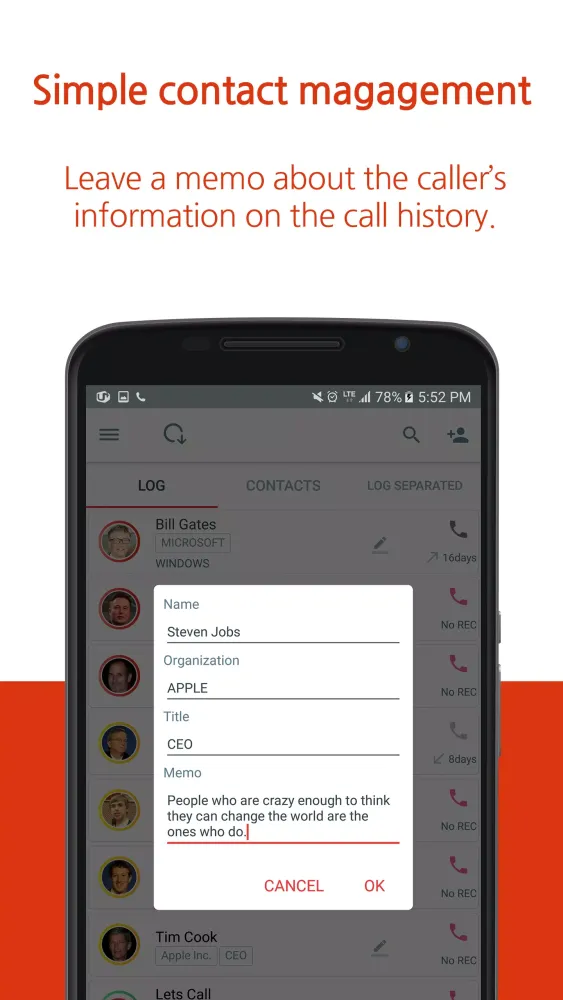 Searching for a specific contact used to be a time-consuming task. With LetsCall, you can quickly find any contact not only by name but also by company, title, or even a memo. This comprehensive search functionality saves you precious time and enhances your overall user experience.