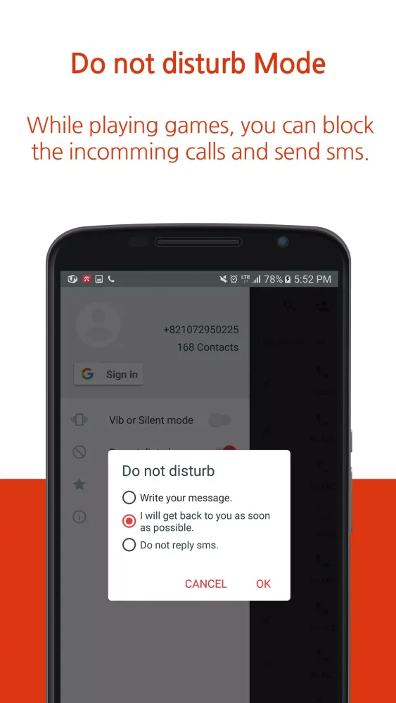 Sometimes, you need to focus on other tasks without interruptions from incoming calls. LetsCall offers a "Do Not Disturb" mode that automatically rejects calls and sends a message indicating that you'll get back to the person shortly. This feature is particularly useful when you're driving or deeply engaged in a game or activity.