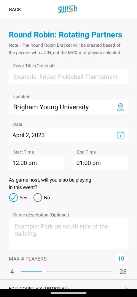 All Swish users have the freedom to create pick-up games or join existing ones. When creating a game, you'll be prompted to specify the location, time, sport, and number of open spots. This flexibility allows you to organize private games for your close-knit group or public games that are open to anyone.