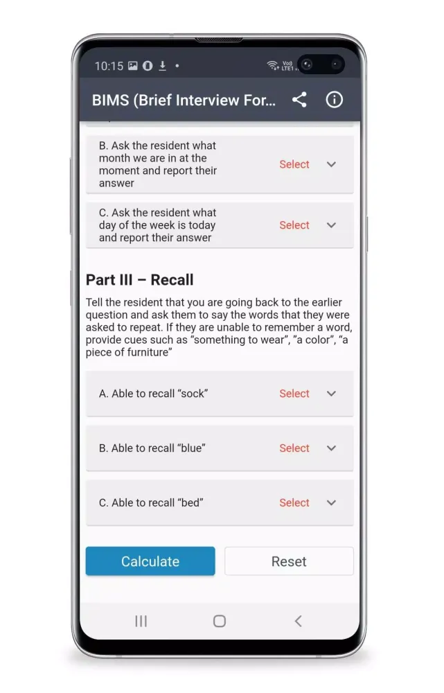 The Brief Interview For Mental Status (BIMS) Score is particularly useful in healthcare environments where time is limited but accurate assessments are essential. By evaluating cognitive functions through a series of straightforward questions and tasks, the BIMS Score Calculator helps healthcare professionals identify early signs of dementia or other cognitive disorders. Early detection is critical in managing these conditions effectively, allowing for timely interventions that can significantly improve patient outcomes. This calculator ensures that evaluations are conducted consistently and objectively, reducing the risk of misdiagnosis and ensuring that patients receive the care they need.