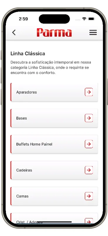The first thing you'll notice is the vibrant yet sophisticated presentation of the product lines. Parma Móveis features distinct collections such as the Classic line, which embodies timeless beauty and durability, perfect for those who appreciate traditional aesthetics. On the other hand, the Casual line brings a modern twist, ideal for contemporary spaces seeking comfort and simplicity. Additionally, the Slim collection focuses on minimalist designs, catering to users who prefer sleek and space-saving solutions. Each category is thoughtfully curated to ensure that every piece complements both your lifestyle and interior design preferences.