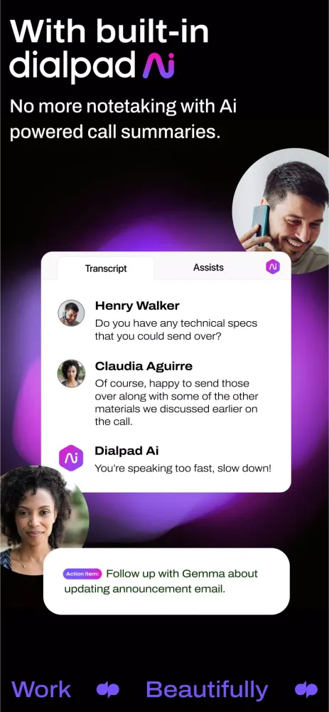 Leverage Dialpad's Voice Intelligence™ technology to automatically transcribe your calls as soon as you hang up. This feature ensures that you never have to second-guess what was discussed during the call. The transcriptions are immediately available for your review, saving you time and effort.