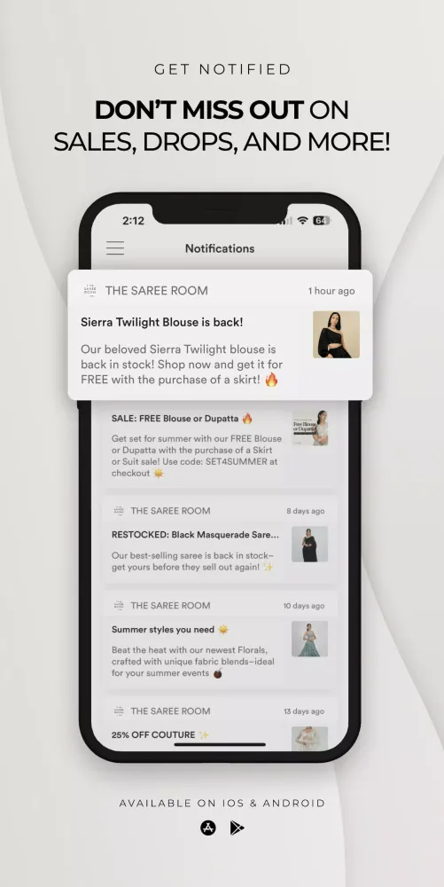 Stay ahead of the curve by downloading the The Saree Room app today. Shop the latest collections, receive personalized recommendations, and be the first to know about exclusive deals and events. With our user-friendly interface and top-notch customer service, you're sure to have a delightful shopping experience.