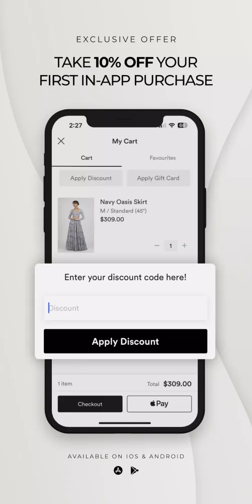 As a valued customer, you will receive exclusive benefits when shopping through our app. Enjoy free express shipping on all orders over 150 CAD, making it even easier to indulge in your fashion desires. Additionally, use our WISHLIST functionality to save your favorite items and stay updated on surprise sales offering up to 60% off.