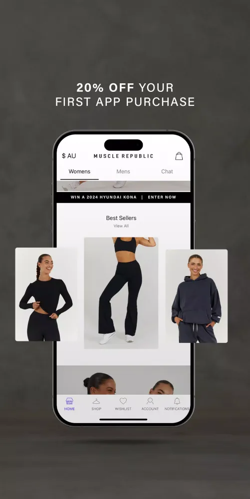Unlock a world of style and comfort with the Muscle Republic app! Download it now to experience exclusive discounts, early access to our latest collections, and everything else you love — all at your fingertips.