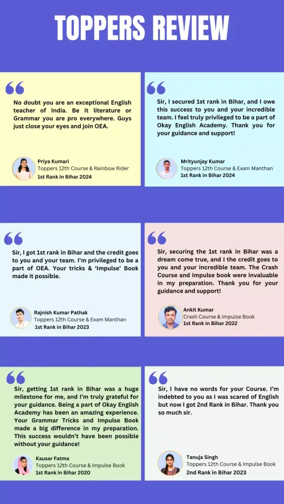 Okay English Academy is more than just an educational platform—it’s a hub for excellence, designed to empower students and learners across India. Whether you're preparing for the Bihar School Examination Board (BSEB) exams or aiming to master English speaking skills, this academy offers tailored courses that cater to your needs. Known for its exceptional quality and results-driven approach, Okay English Academy has become synonymous with success. Every year, some of the top scorers in the BSEB board exams hail from this prestigious institution.