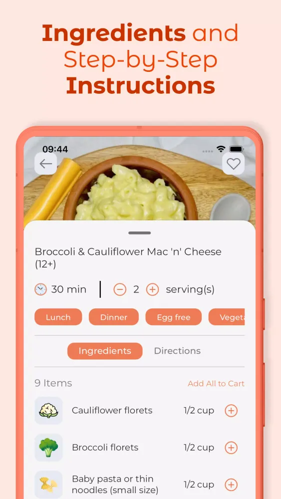 Another highlight is the Search Filters feature, enabling you to find the ideal recipes based on age, ingredients, dietary preferences, and specific nutrient needs. If you’re running low on supplies, the Shopping List function lets you seamlessly add ingredients straight from the recipes to your grocery list, making shopping for baby essentials a breeze. These practical tools empower you to stay organized and focused on your baby’s health.