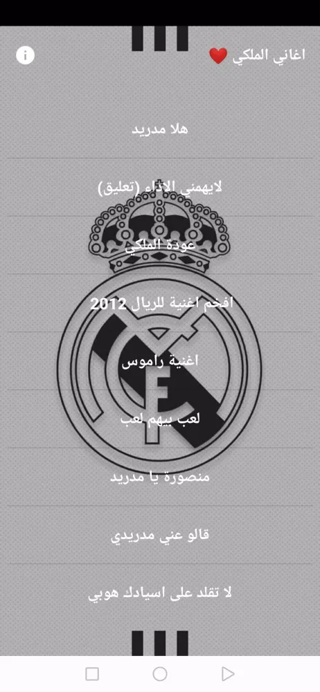 Experience an extensive collection of the most beautiful and diverse songs from the Royal Club, Real Madrid, right at your fingertips. This application offers a curated playlist that allows you to enjoy your favorite tunes without needing an internet connection. Whether you're at home, on the go, or in areas with poor connectivity, you can still immerse yourself in the melodies that have captured the hearts of fans worldwide.