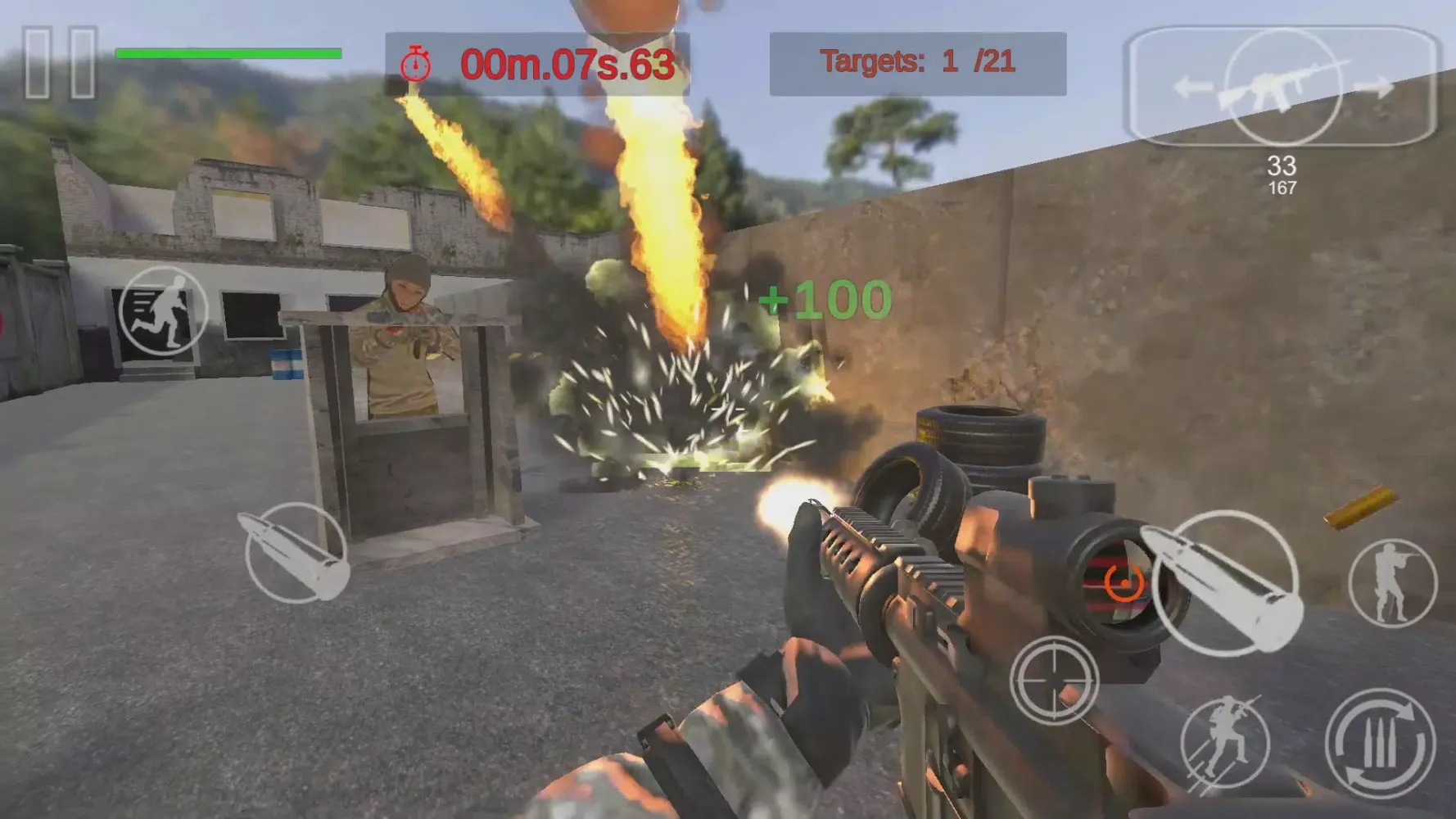 The game’s progression system adds depth and motivation. Initially, you'll begin in the Shooting Range, equipped with a basic pistol to take down enemy targets, collect coins, and gain experience points to level up. As you advance through the ranks, new levels and advanced weaponry are unlocked, allowing you to tackle increasingly complex challenges. The arsenal includes a wide variety of guns, each with unique characteristics, ensuring there’s always something fresh to explore and master. With future updates planned, the game promises even more weapons and levels, keeping the experience ever-evolving and engaging.
