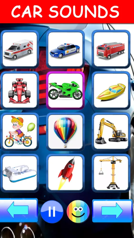 Diverse Vehicle Sounds: From classic trains to futuristic rockets, the app includes a comprehensive list of vehicle sounds: