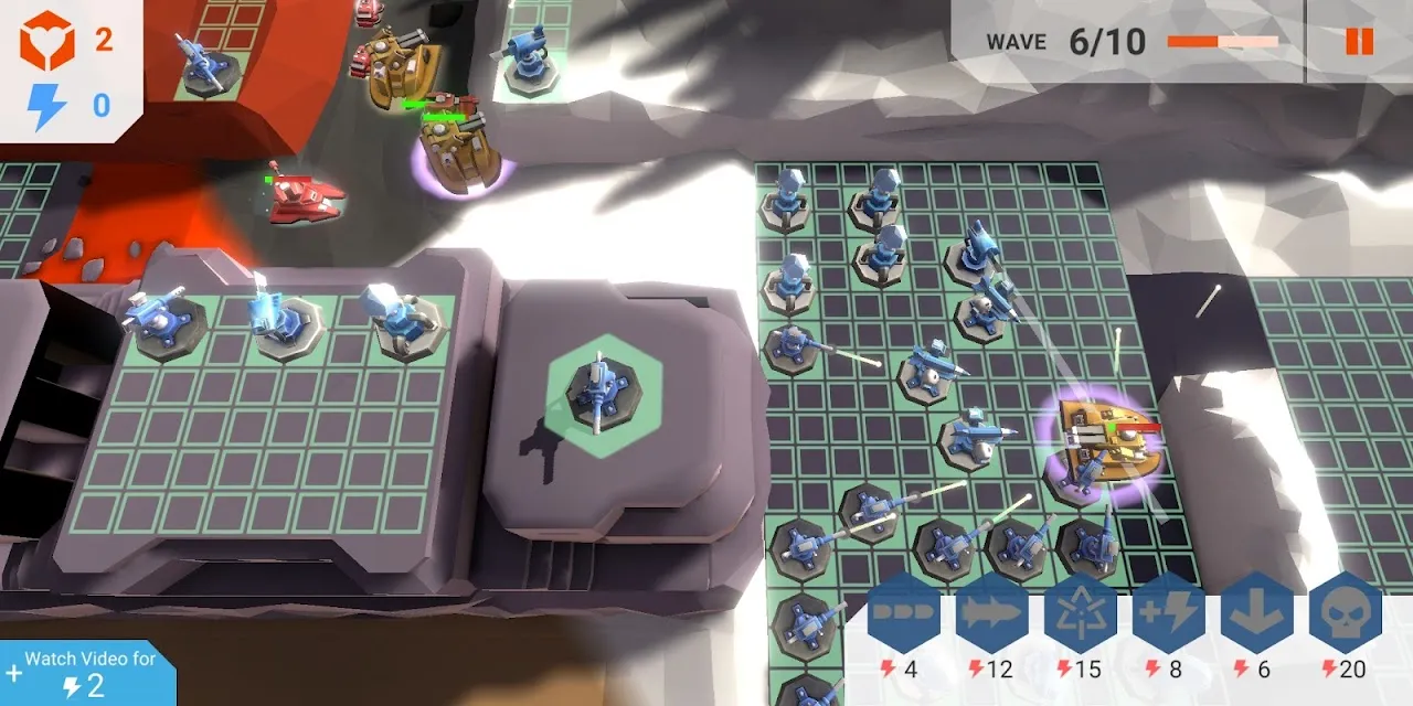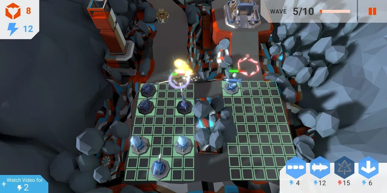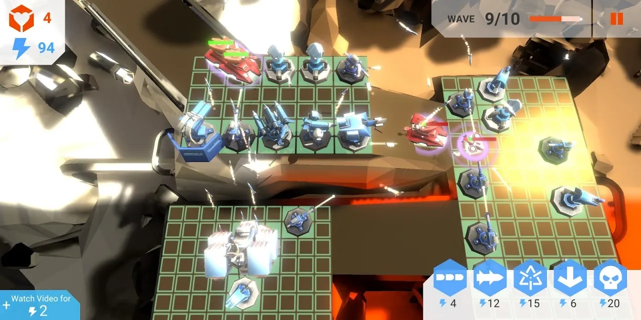 Robots and machines are attacking Tony's building that wants to damage and destroy it. To prevent these, the Tower asks you for your help. You need to design defense systems in strategic places indicated by squares on the screens. In this way, you can destroy the enemy and gain victory.