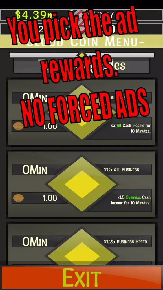 One of the standout features of Trade Invest Idle Tycoon Sim is its commitment to providing a seamless user experience. We believe in offering players freedom rather than forcing advertisements down their throats. While optional ads are available for those who wish to support us, they never disrupt gameplay or hinder progression. This approach allows everyone to enjoy the game at their own pace without feeling pressured to engage with intrusive content.