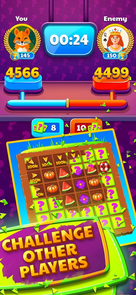 Once you're ready for a real challenge, dive into Scratch Duels against other players. Scratch quickly and get lucky to claim victory. As you progress, you'll face increasingly demanding opponents and climb higher in the rankings.
