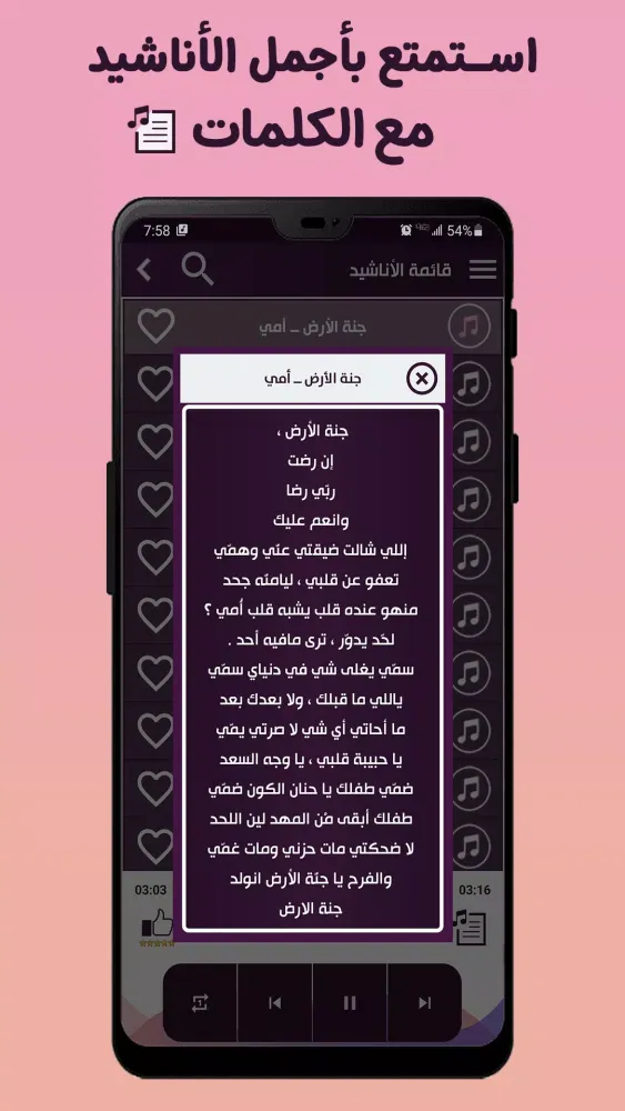 - Lyrics Display: View the lyrics while listening to the nasheeds, enhancing the spiritual experience.