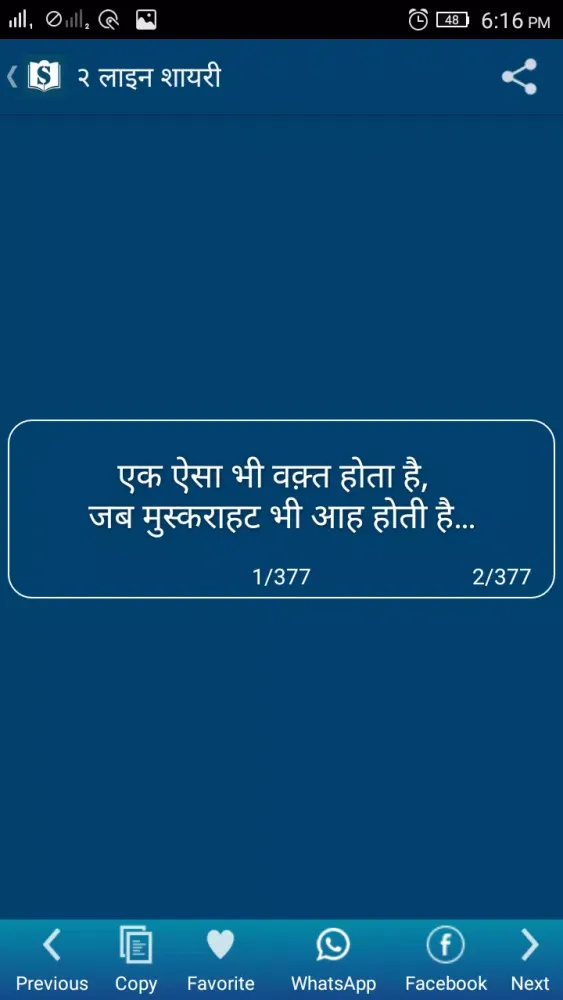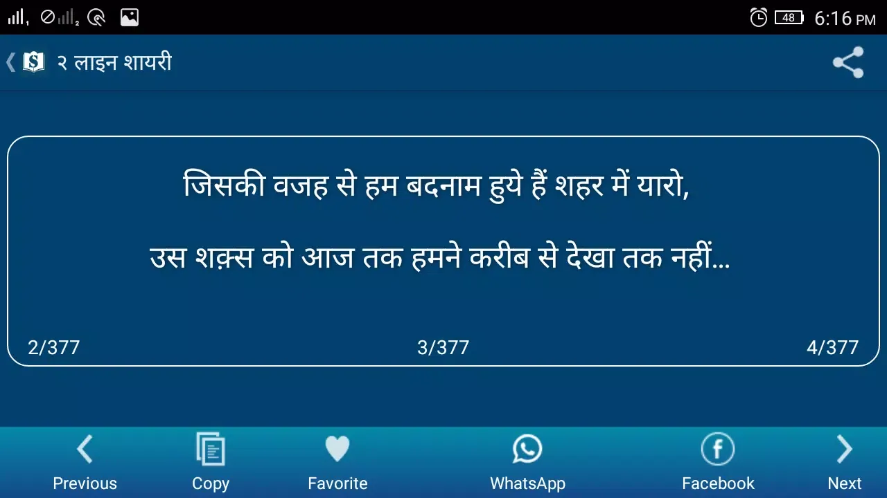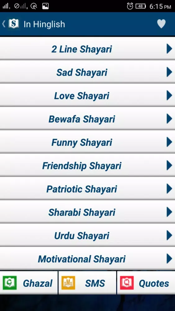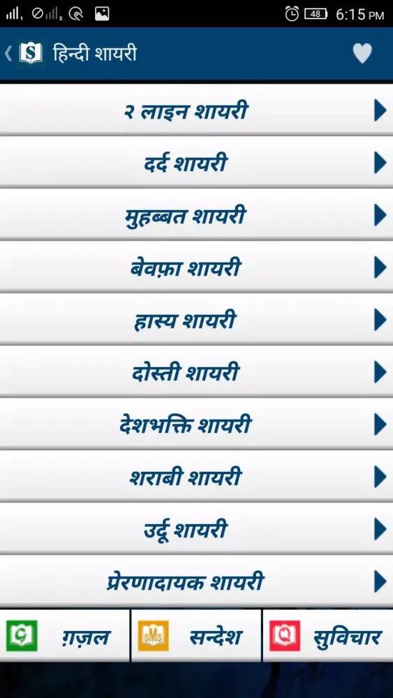 The app boasts the largest collection of Hindi shayaris and SMS, making it the go-to destination for poetry enthusiasts on Android. With over 5000+ shayaris in diverse categories, you'll find content tailored to every mood and occasion. From romantic verses that capture the essence of love to motivational shayaris that inspire and uplift, this app ensures there's something for everyone. If you're feeling nostalgic or need a bit of laughter, the app also includes funny shayaris that will brighten even the dullest days.