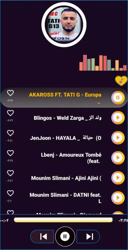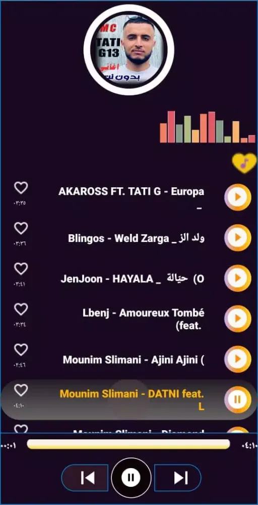 Our application includes the most beautiful collection of TATI G13's 2023 songs. These are handpicked from the artist's best and most popular tracks, ensuring that every user gets a rich and engaging musical experience. Whether you're a casual listener or a dedicated fan, you’ll find something special within this comprehensive library.