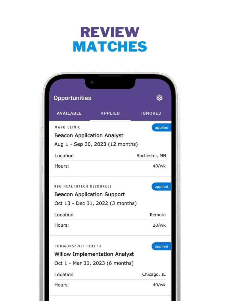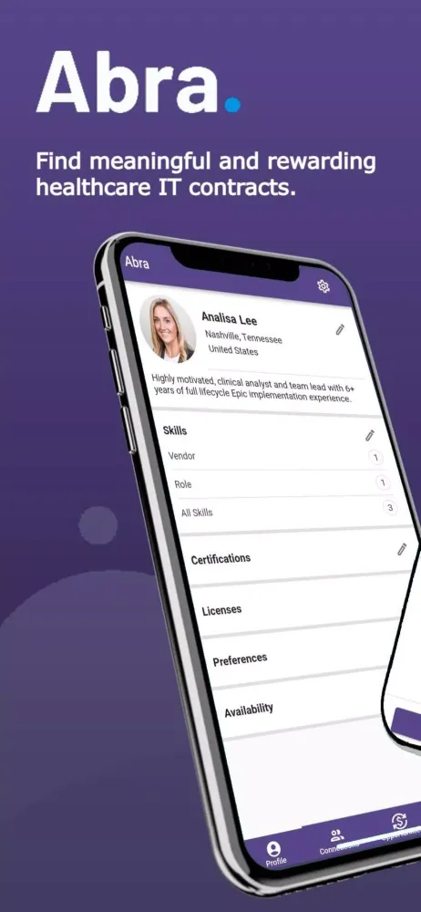 Simply download the app, spend a few minutes setting up your profile, and let Abra handle the rest. Experience the future of health IT recruitment today!