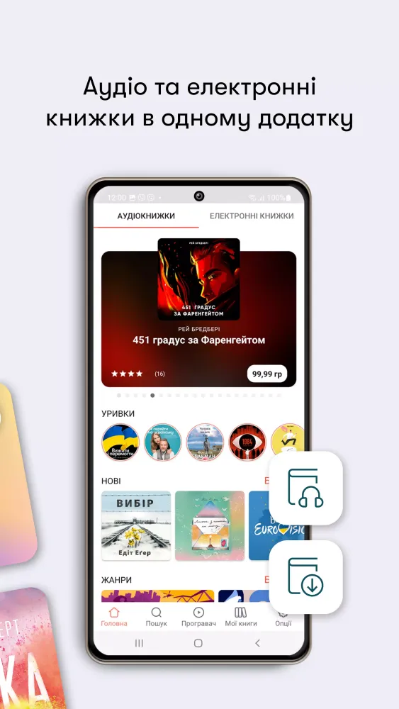 Abuk is a Ukrainian application designed to bring you a vast collection of audiobooks, e-books, and popular podcasts. With over 600 audiobooks and 3,000 e-books in the Ukrainian language, Abuk offers a rich selection of both free and paid content from Ukrainian and international authors.