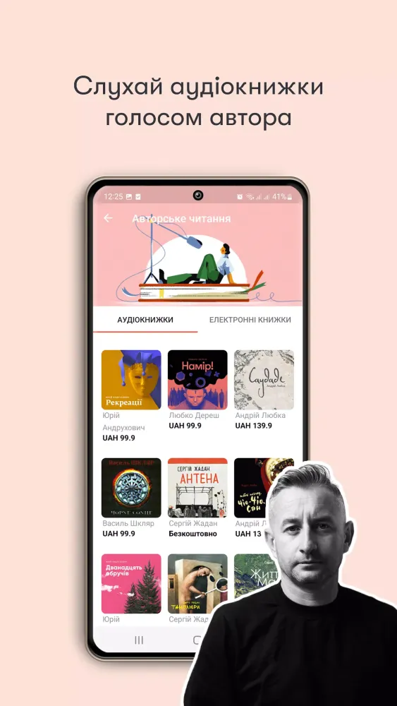 In Abuk, you'll find a wide range of genres, from contemporary works to classic literature, fiction and non-fiction, detective stories, science fiction, children’s books, and poetry. The books are narrated by professional announcers and Ukrainian writers, including renowned voices like Serhiy Zhadan, Pavel Vyshebaba, Serhiy Prytula, Valery Markus, Sonya Sotnyk, Dmytro Buzynskyi, Andriy Lyubich, and many others.