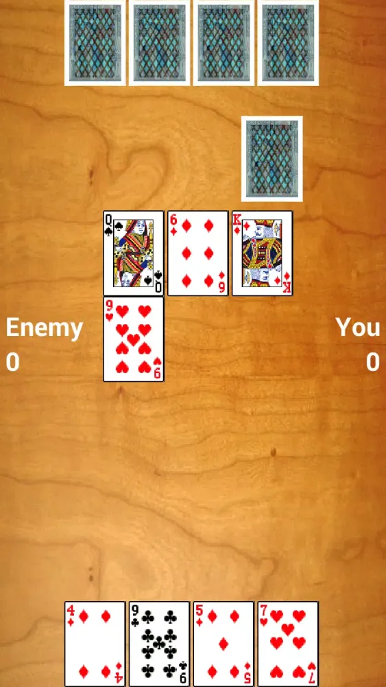 Players can take cards from the ground if they match a card in their hand or if the numeric values of the ground cards add up to the value of a card in their hand. Face cards (Jacks, Queens, and Kings) do not contribute to the sum. For example, if the ground has an Ace (value 1), a 7, a King, and an 8, a player holding an 8 can take three cards: the 8 and the 1 + 7 that equals 8. Alternatively, a player holding a 9 can take the 8 and 1, summing up to 9.