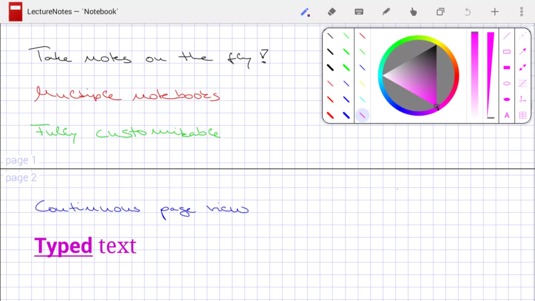 - Create handwritten notes with remarkable precision using a stylus or your finger. The app supports multi-touch gestures, allowing you to zoom in and out effortlessly.