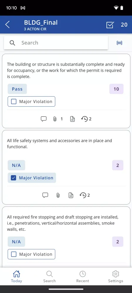 Comment and Communicate: Insert comments using comment controls that support ad hoc entries as well as custom, favorite, and recent comments, ensuring comprehensive documentation of each inspection.
