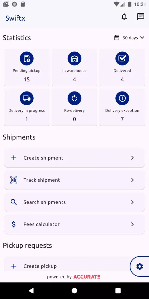 Another remarkable feature is the instant pricing calculator. With Swiftx, you can quickly determine the cost of your shipment right from your phone. This functionality helps you budget effectively and plan accordingly, whether you're shipping locally or internationally. The app also provides detailed information about your financial transactions, keeping your account statement transparent and easy to understand. By offering these tools, Swiftx ensures that users have access to all the necessary data to make informed decisions regarding their shipments.