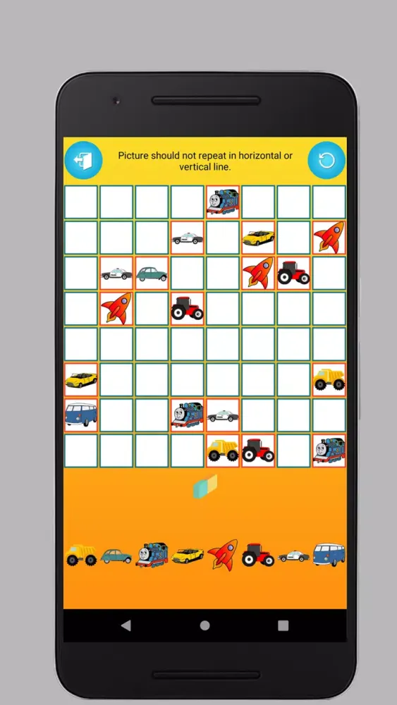 Brain Puzzle - Pictures stands out with its unique rule set, which adds layers of complexity and intrigue. A key rule states that no two identical pictures can repeat horizontally or vertically on the puzzle board. This rule transforms each puzzle into a captivating exercise in strategy, requiring meticulous planning and foresight with every move you make.