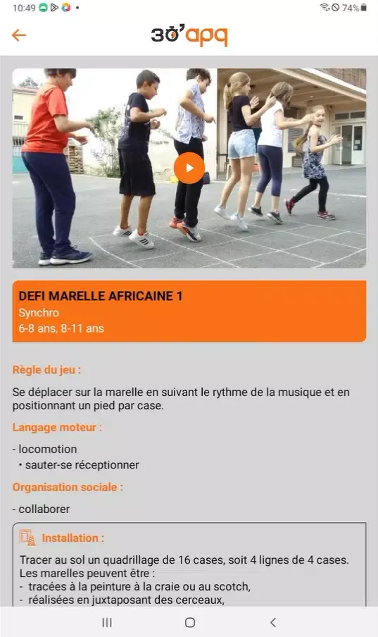 The materials provided through this application are versatile and adaptable, ensuring they meet the diverse needs of different stakeholders. For instance, teams tasked with deploying the program across Diocesan Education Services (DSDEN) can utilize the content offered by "30minAPQ," while educational advisors (CPD/CPC/IEN) and specialized coordinators (PTP CAS) can tailor these resources to align with regional objectives. Furthermore, the application serves as a valuable asset for organizations managing collective activities for minors, such as federations or local associations. These groups can use the application to design engaging, age-appropriate activities that promote both physical well-being and social interaction.