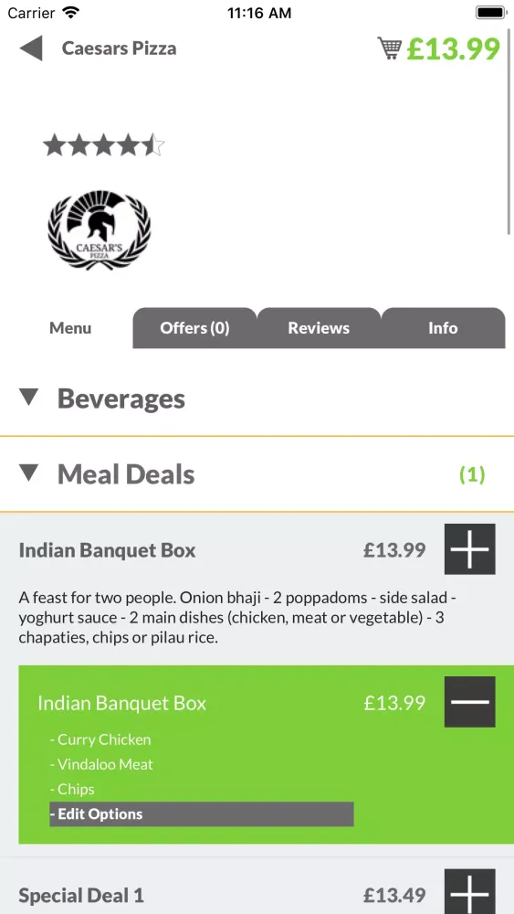 Our application is packed with useful features that make ordering from Caesars a breeze: