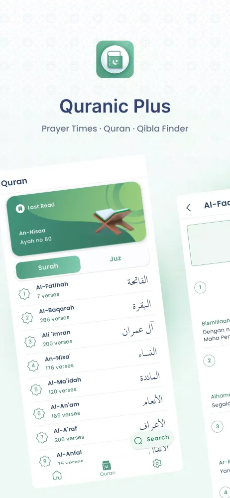At the heart of Quranic Plus lies its comprehensive Quranic reader, which allows users to explore the divine words of Allah in both Arabic and Indonesian translations. With features like audio playback, bookmarking, searching, and sharing your favorite verses, the app transforms the act of reading into an engaging and interactive experience. Imagine being able to listen to the soothing recitation of the Quran while commuting, studying, or simply taking a moment of reflection—this app makes such moments possible.