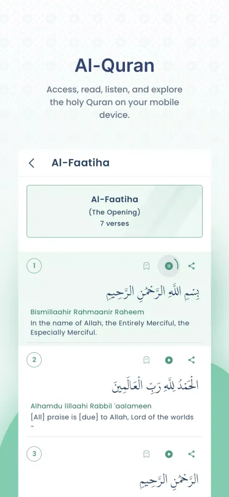 - Quran: Play audio recitations, bookmark your favorite verses, search for specific chapters or verses, and share inspiring passages with friends and family.