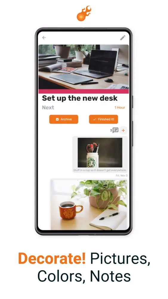 Make your tasks more engaging and memorable by adding colors and pictures. This visual-spatial card design helps build memory associations and keeps your working memory from getting overloaded.