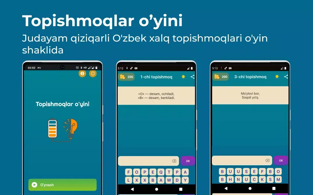 We hope that our app brings joy and satisfaction to players of all ages. If you find yourself enjoying the game even a little bit, we are thrilled! Our goal is to create an environment where everyone can enjoy the thrill of solving riddles while appreciating the rich cultural heritage of Uzbekistan. So, dive into the world of "Topishmoqlar o'yini - 300-ta..." and see how many challenges you can conquer today!