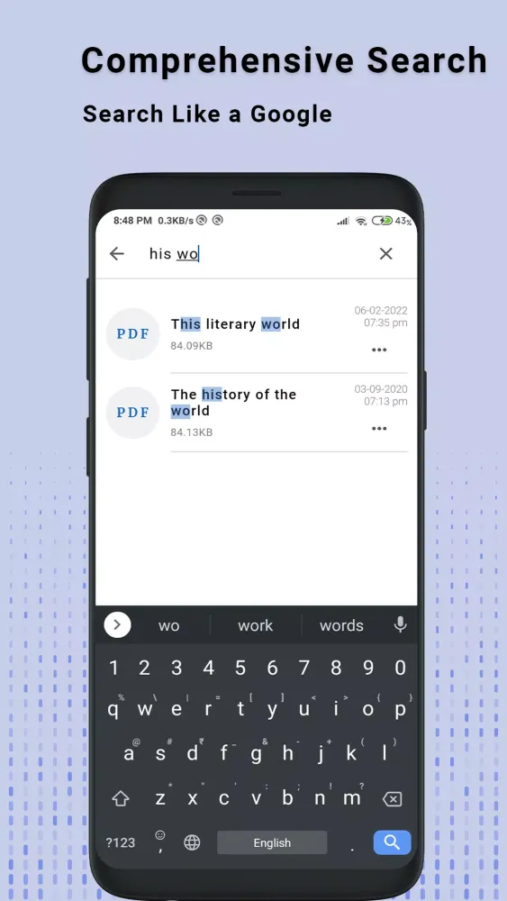 - Search Functionality: Search for documents like using Google, making it easier to find your PDFs by name.