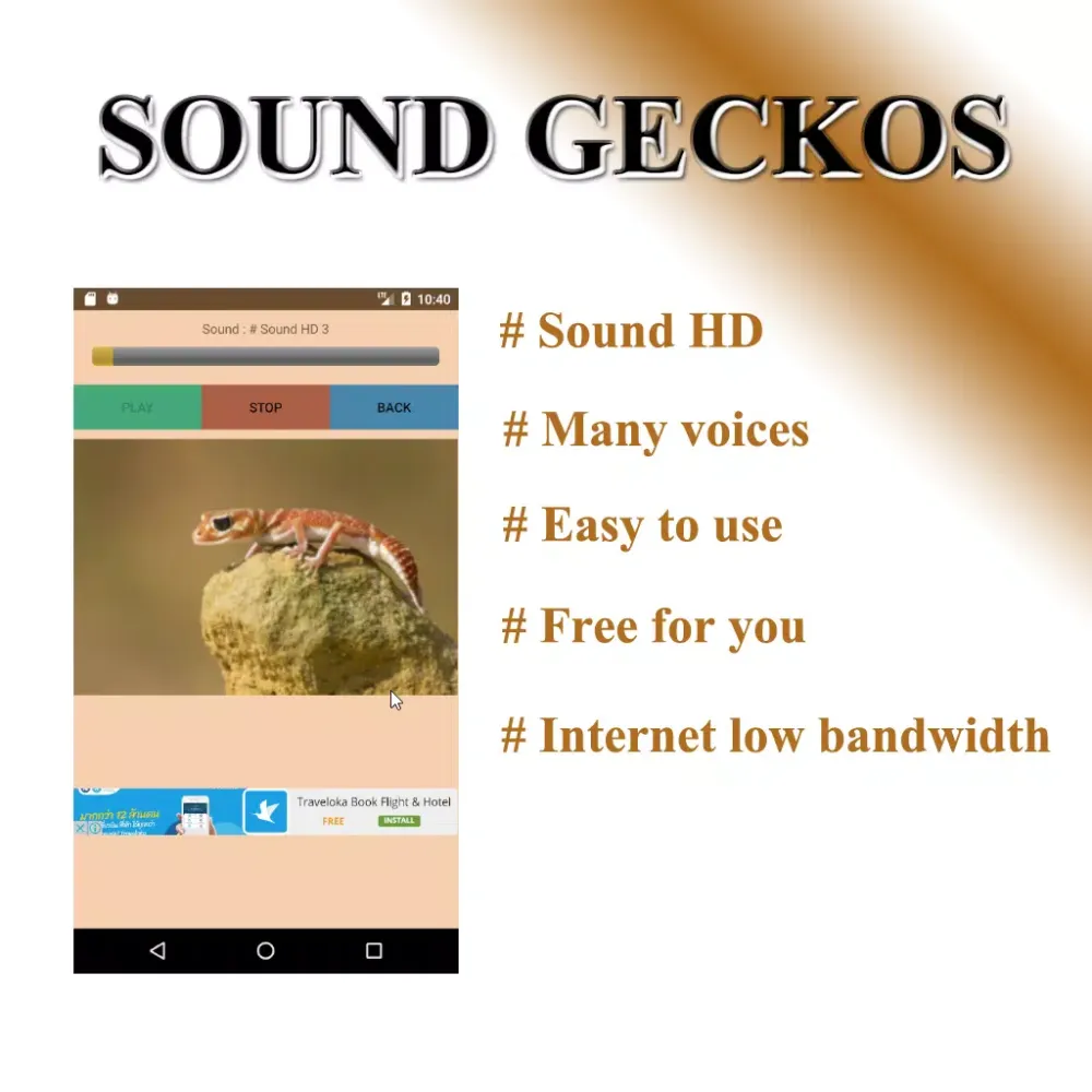 Gecko's Sweet Voice is an application that brings together the enchanting sounds of geckos, designed for you to use in any setting you choose. Whether you want to create a serene atmosphere or simply appreciate the natural beauty of these creatures, this app offers a collection of gecko sounds to enhance your experience.