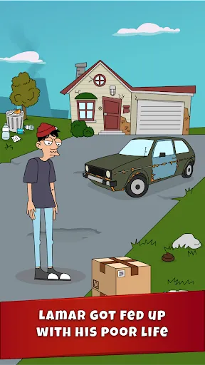 Lamar lives in a real trash city, drives an old rusty junk car, can afford only one discounted egg for breakfast, looks like a stickman, spends his evenings in a local bar and dreams about real success.