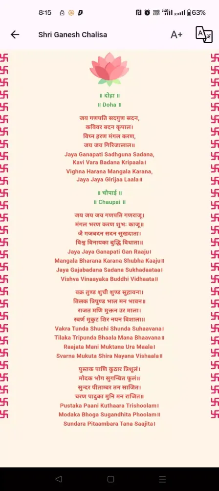 Equally impressive is the selection of Chalisas within the app. These hymns pay homage to various gods and goddesses, providing opportunities to seek blessings from deities like Lord Shiva, Goddess Parvati, and Lord Rama. Beyond mere recitation, the app delves deeper into the philosophical underpinnings of each verse, helping users grasp the spiritual significance embedded within these ancient texts. For those unfamiliar with Sanskrit, fear not! The app supports multiple languages for translations and transliterations, making it accessible to a global audience eager to explore their faith.