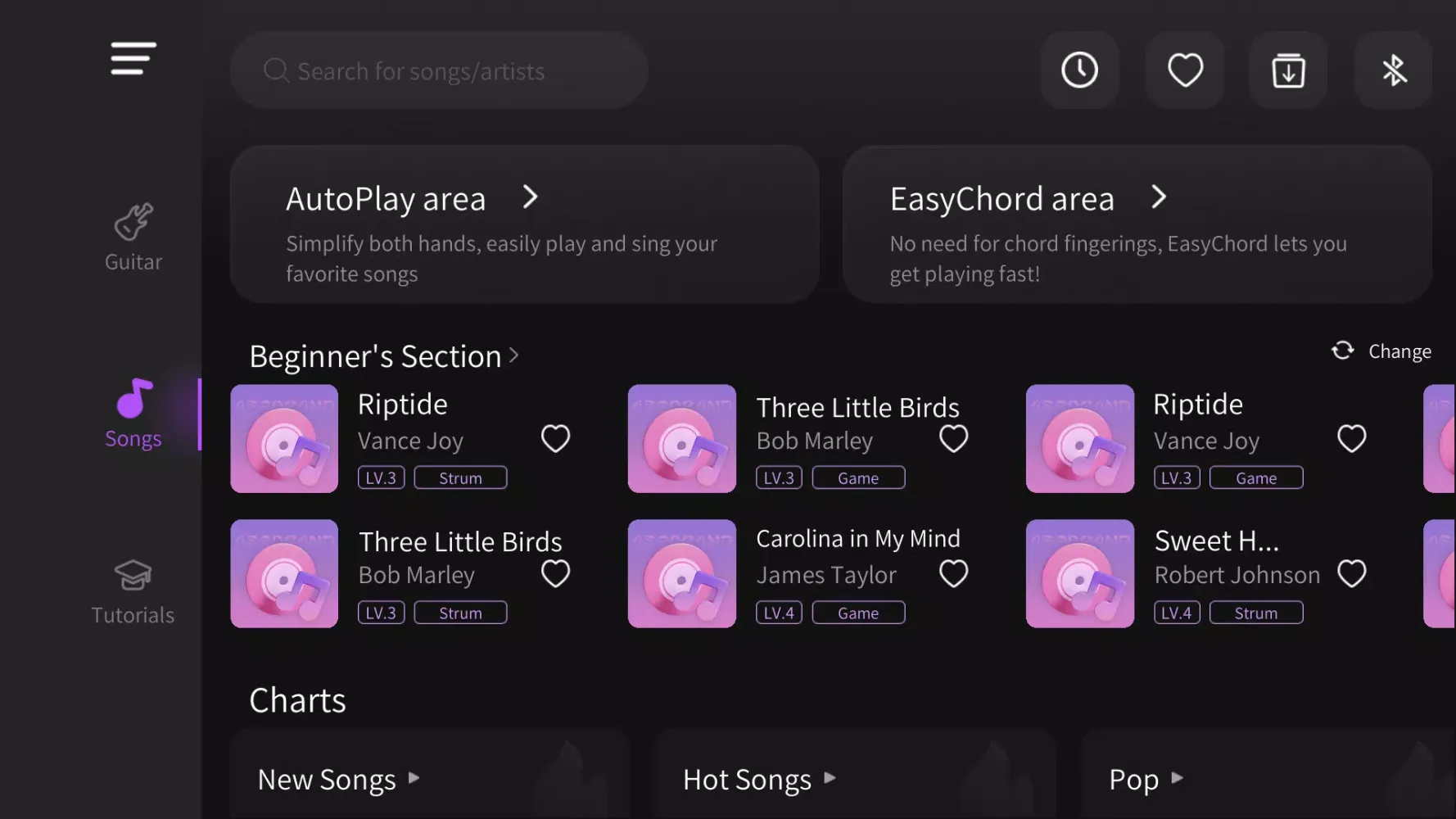 Game Mode: Play your favorite songs like a game. Even if you’ve never played guitar before, you can easily strum the strings and sing your favorite tunes.