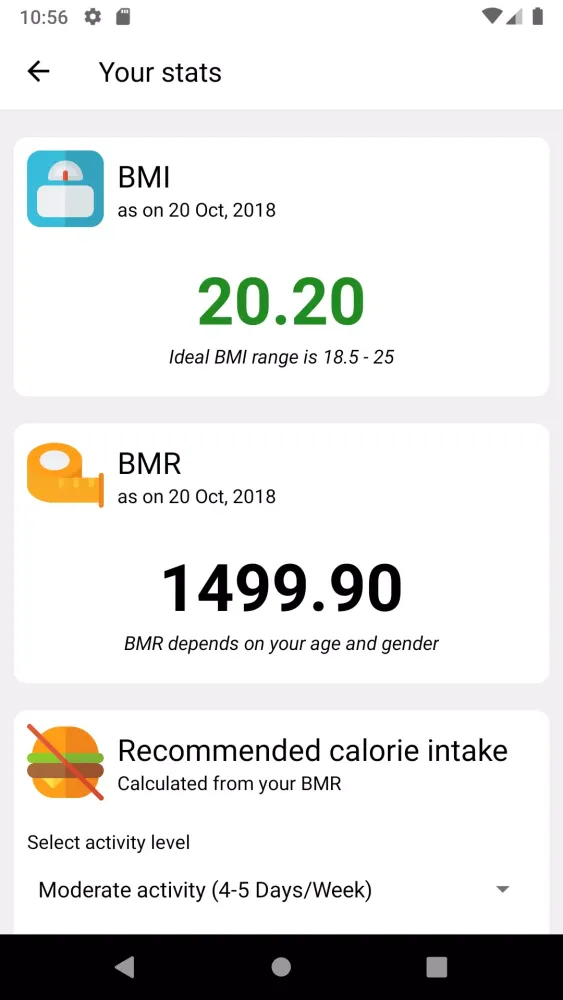 In addition to your workout and diet plans, the app offers valuable insights into your health metrics. You can view your latest Body Mass Index (BMI) and Basal Metabolic Rate (BMR), which are essential indicators of your overall health and metabolism. Furthermore, the app calculates your recommended calorie intake, helping you make informed decisions about your food choices and portion sizes. These features empower you to take control of your health and achieve your fitness milestones with confidence.