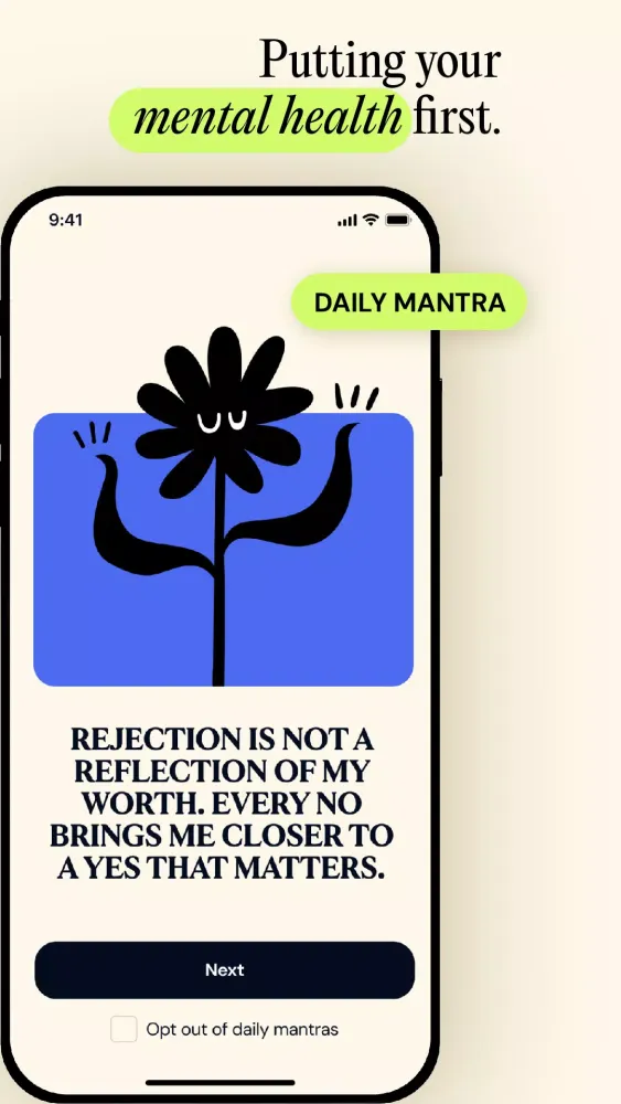After prioritizes your mental health. From daily mantras reminding you of what's important to the respectful ending of matches thanks to Goodbye Ghosting, After cares about more than just finding your happily ever after.