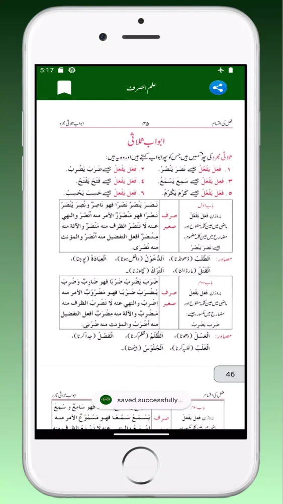 The app covers advanced topics from the last book of IlmSarf Basic Grammar, making it a step further in complexity compared to the initial book (IlmSarf Awaleen). Key features include: