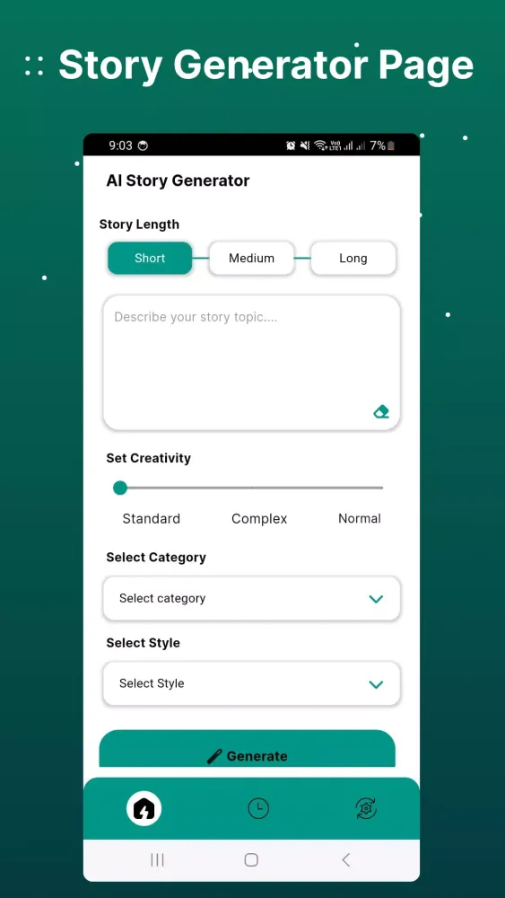 Customize the tone and complexity of your story. Select from Normal, Complex, or Standard settings to match your desired storytelling style.