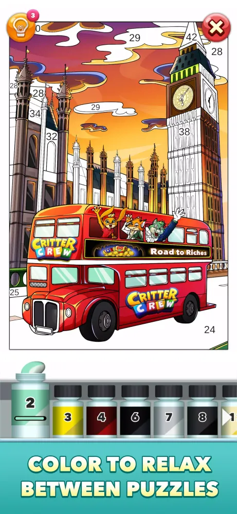 Experience a colorful cartoon style with classic characters and a modern twist. Solve puzzles to unlock paint sets and stunning artwork that captures the adventures of the crew. Immerse yourself in the world of Critter Crew with every completed stage.