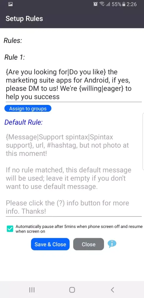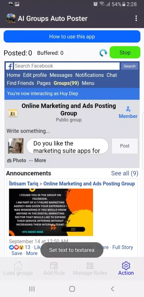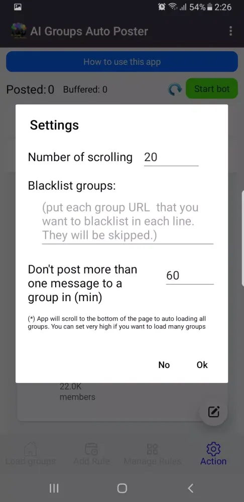 When the screen remains on, AI Groups Auto Poster operates at its best. However, even if you cannot keep the screen on indefinitely, simply open the app and let it take over the rest of the process. The app will continue to function seamlessly in the background, making your job easier.