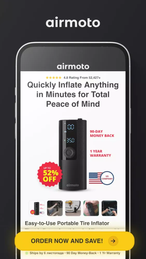 The AirMotoApp makes it easy to order your portable air pump directly from your phone. Simply open the app to browse, learn more about the product, and purchase AirMoto for fast, reliable inflation on the go. Download the AirMotoApp today and stay safe on the road with this essential tool!