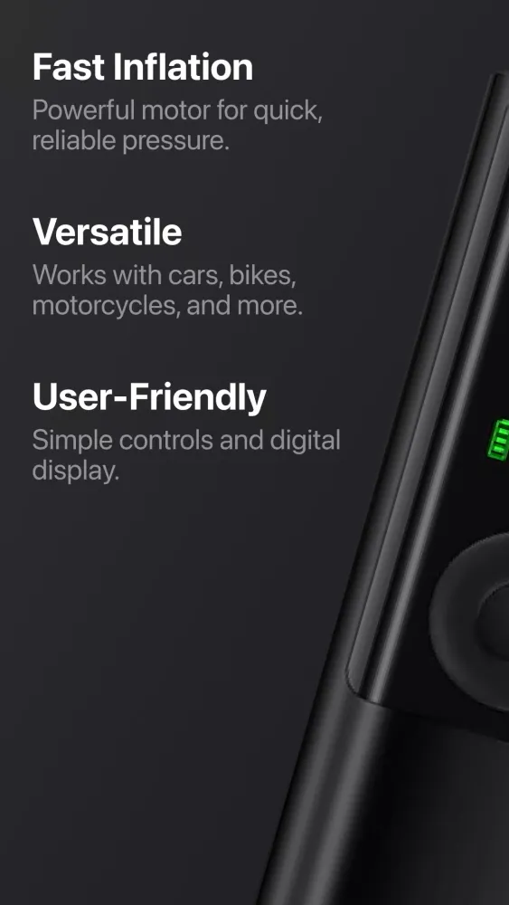 - Multiple Modes: Quickly set the correct pressure for different types of vehicles.