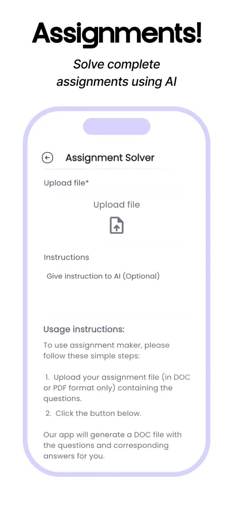 - š Assignment Maker: Upload your assignments, and let AI create comprehensive, high-quality results.