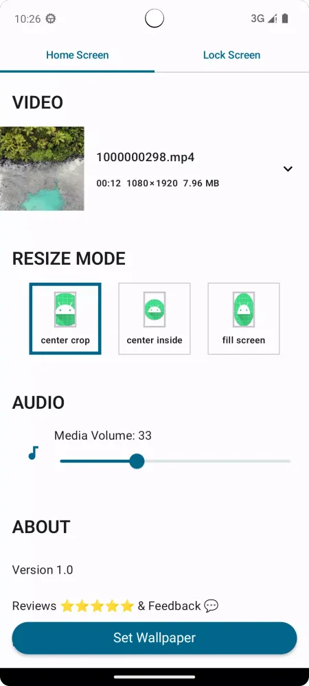 Resize Mode for Video: Adjust the size of the video to perfectly fit your screen. Whether you want to fill the entire background or position the video where you like, the resize mode gives you full control.