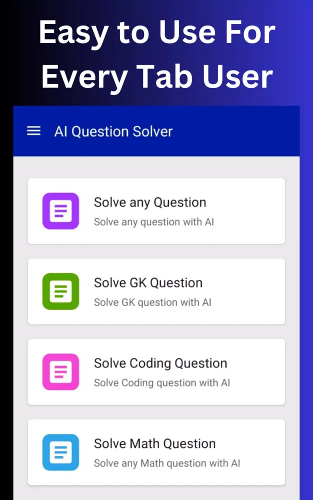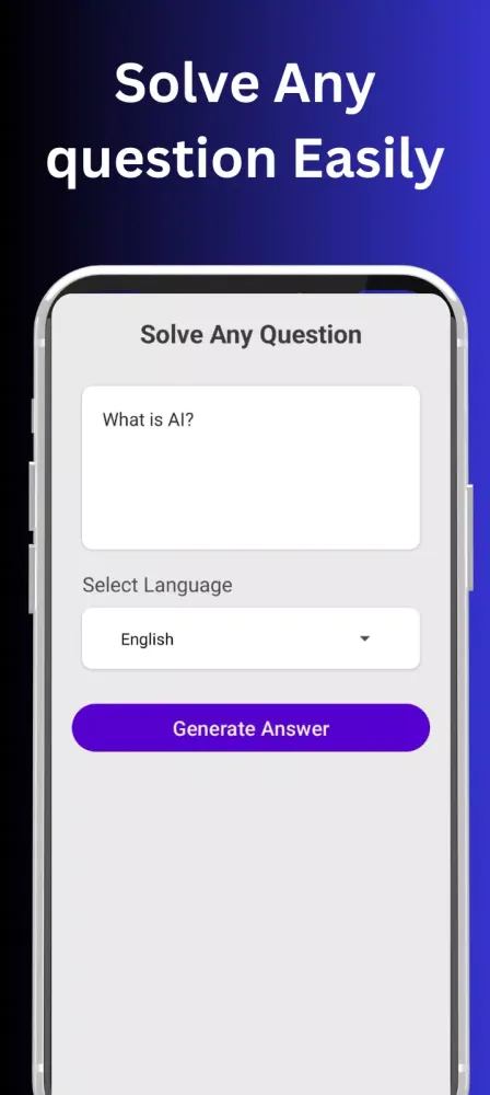 Are you ready to unlock the full potential of artificial intelligence? Introducing AI Question Solver, a groundbreaking application designed to answer your questions with unparalleled speed and precision. Built using the latest advancements in AI technology and powered by the Gemini API, this app transforms your device into a personal assistant capable of handling any query you throw its way. Whether you're stuck on a complex math problem, researching a topic for school, or just looking to learn something new, AI Question Solver is here to make your search for answers effortless.